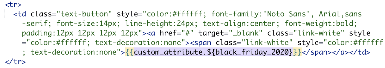 Edit the message body and add the custom attribute defined in the Voucherify distribution. Place {{custom_attribute.${custom_attribute_with_code}}}