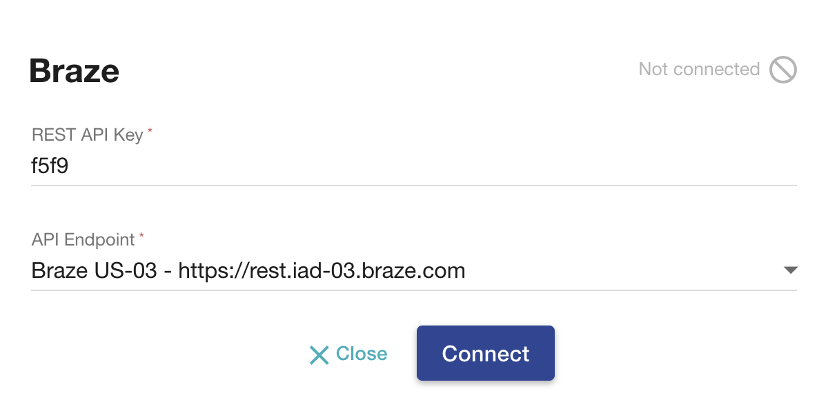 Go to the Integrations directory in your Voucherify dashboard, find Braze and choose Connect.