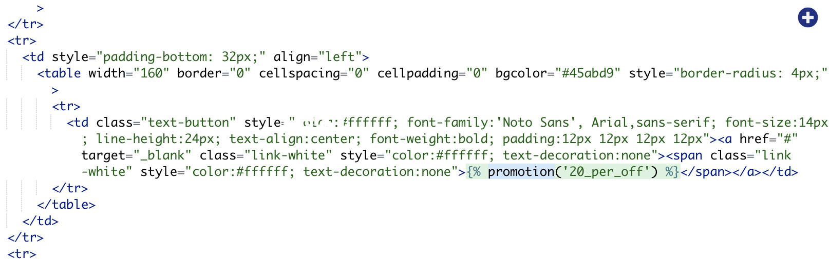 Next, add the code snippet that refers to the codes from the list; it will be populated with a unique code when the message is sent.