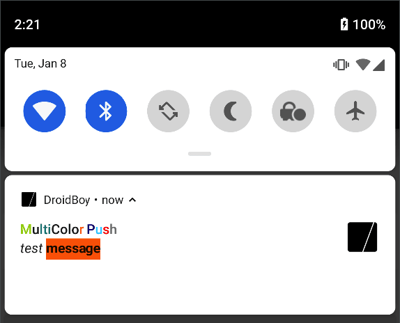 In Braze SDK version 3.1.1, HTML can be sent to a device to render multicolor text in push notifications.