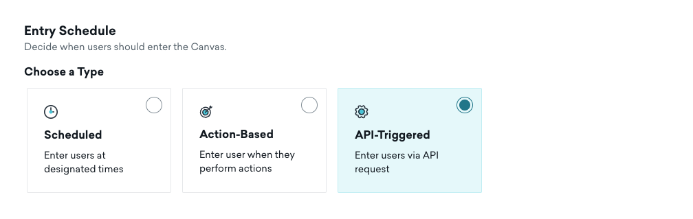 Ensuite, configurez votre copie et vos notifications de la même manière que vous le feriez normalement pour les notifications planifiées et sélectionnez API-Triggered Delivery. Pour plus d’informations sur le déclenchement de ces campagnes à partir de votre serveur, consultez cet article sur l’envoi de campagnes déclenché par l’API.
