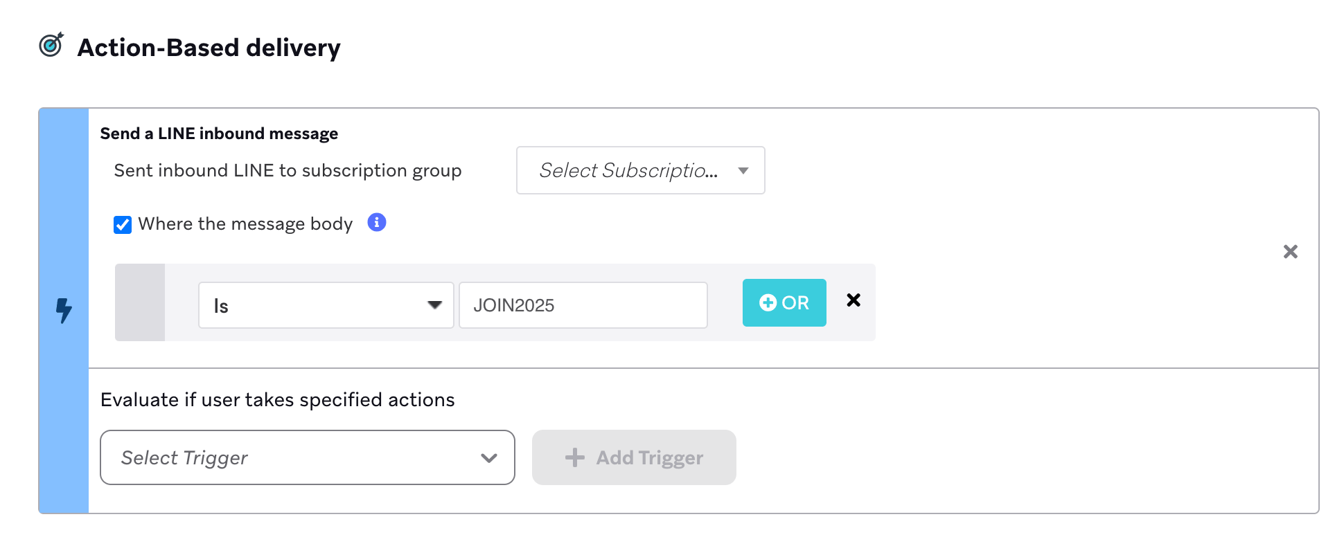Si aucun mot déclencheur n’est spécifié, la campagne ou le canvas sera exécuté pour tous les messages LINE entrants. Il s’agit notamment des messages dont les phrases correspondent à celles des campagnes et des Phrasese actives, auquel cas l’utilisateur recevra deux messages LINE.