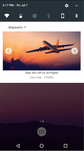 Le contenu push est un nouveau type de notification push introduit par Braze. Cette fonctionnalité reprend le principe du carrousel photo popularisé sur Instagram et Facebook et permet aux marketeurs de créer un carrousel de pages au sein d’une notification push pour raconter une histoire riche et cohérente. Ces pages se composent d’une image, d’une action de clic, d’un titre et d’une description. Vos utilisateurs peuvent parcourir ces pages et découvrir l’histoire telle que vous l’avez conçue.