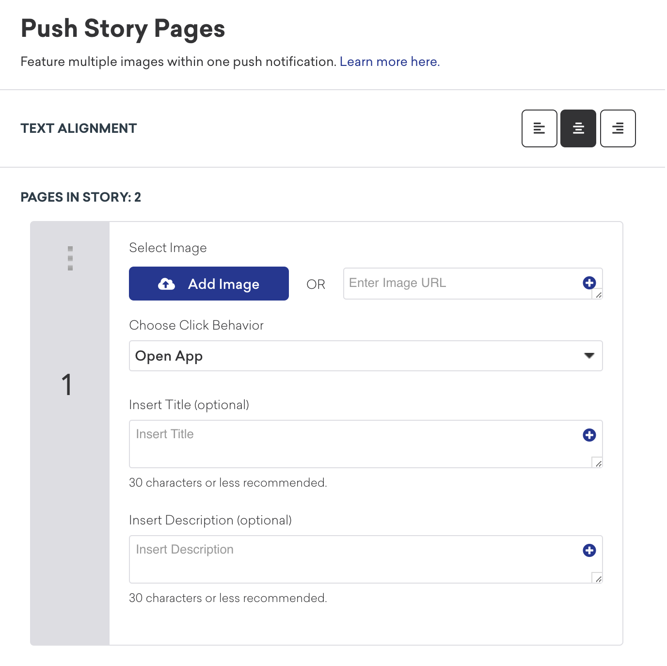 - Pour votre type de notification, sélectionnez Push Stories.