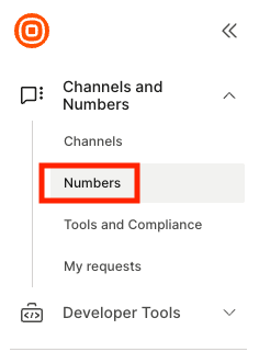 Dans la console Infobip, allez à Canaux et Numéros et sélectionnez Numéros.