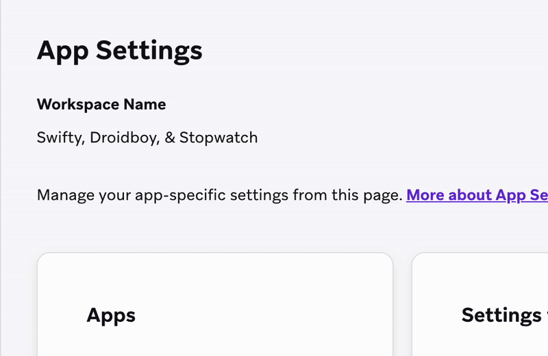アプリインスタンスの追加を開始するための [アプリ設定] ページが表示されます。このページには、[設定] > [アプリ設定] からいつでもアクセスできます。