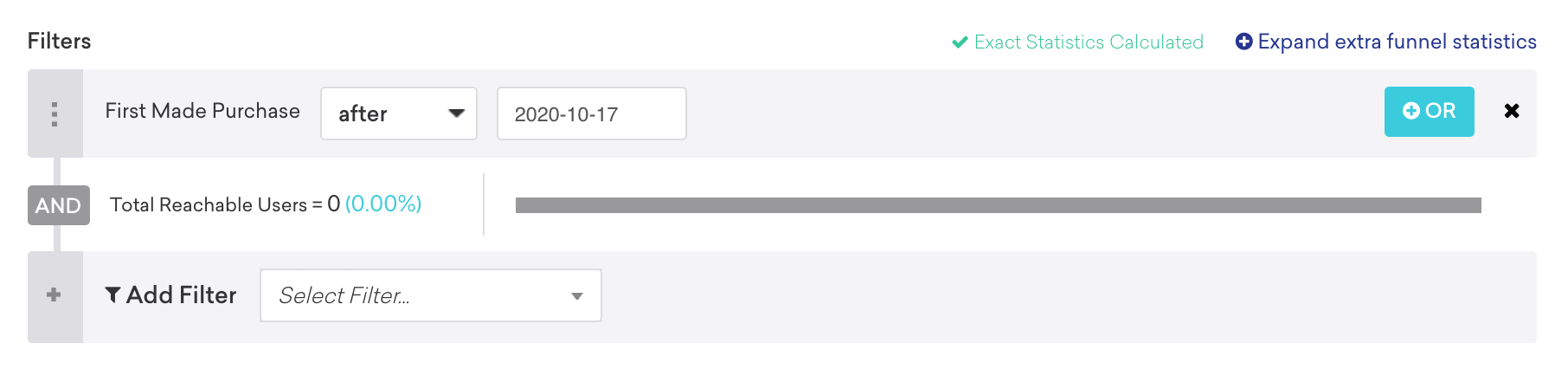 In addition, you can use the breadth of purchase filter in Braze to create segments of users based on:
