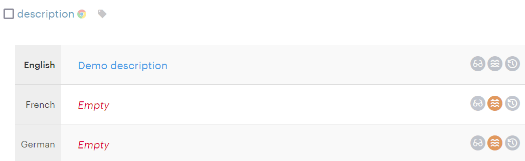 For example, let’s create a simple translation key, description: