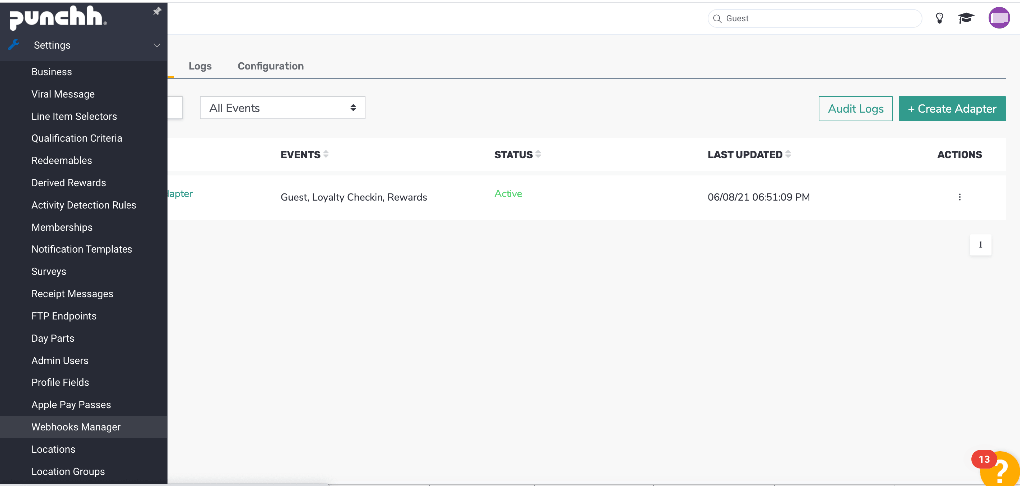 Trabalhe com seu gerente de implementação da Punchh para configurar esse adaptador.