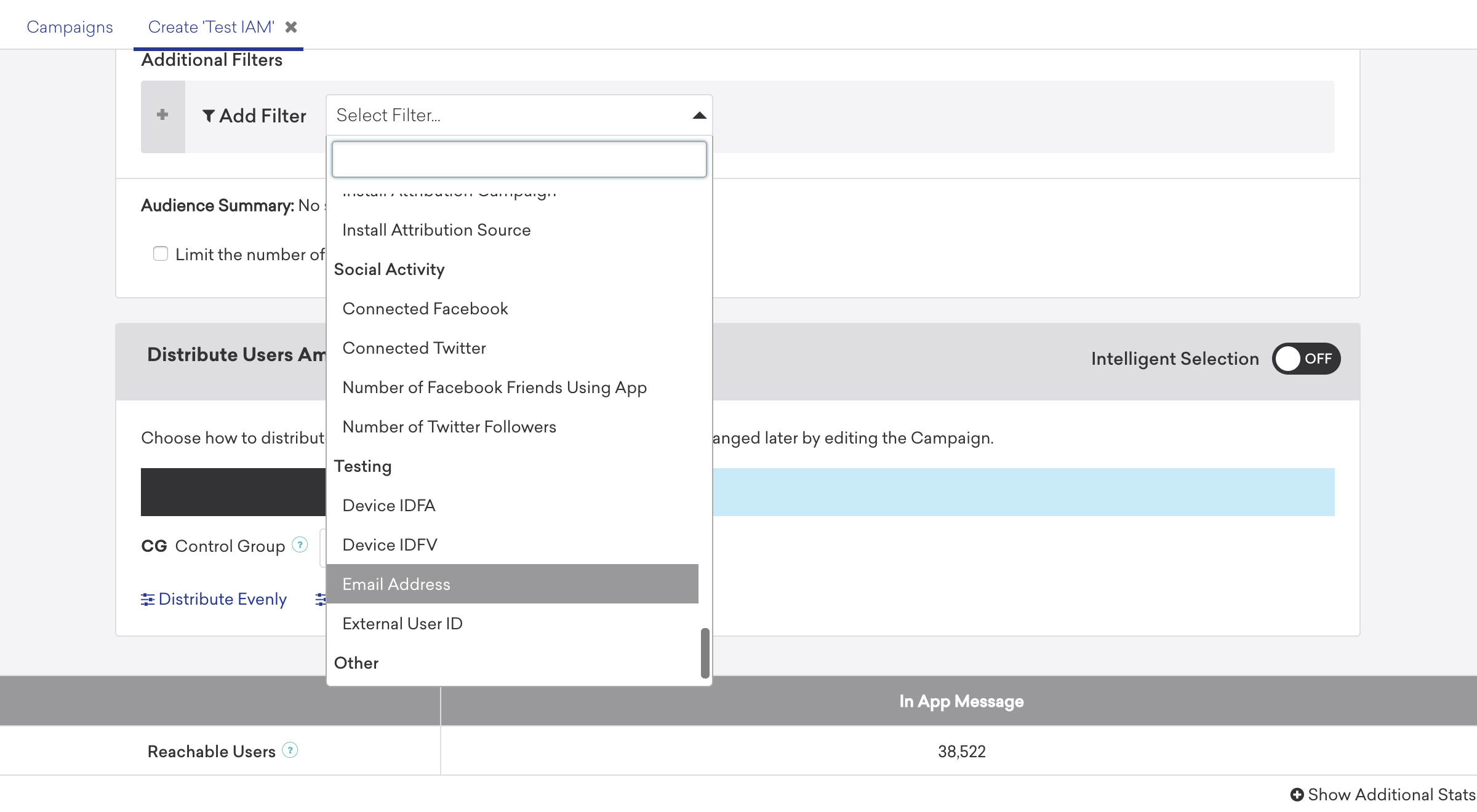 - Target the users as you would for testing by using a testing filter or targeting your own email address, and finish creating the campaign.