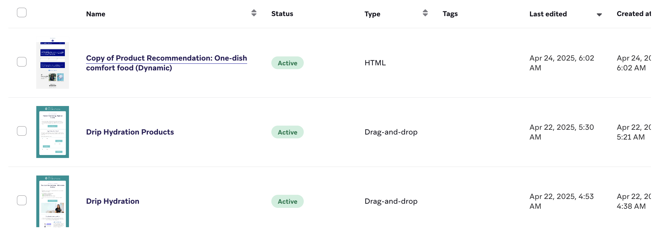 Duplicated templates can be found by sorting the Last Edited column. By default, new templates will be named Copy of ORIGINAL_TEMPLATE_NAME.