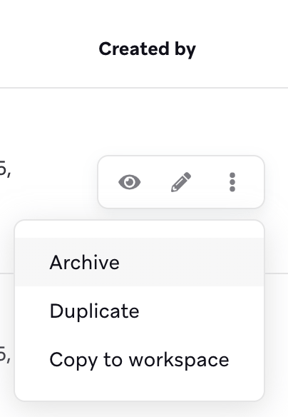 To archive an individual template, select the settings icon on the template grid screen and select Archive. When a template is archived, note the following different scenarios: